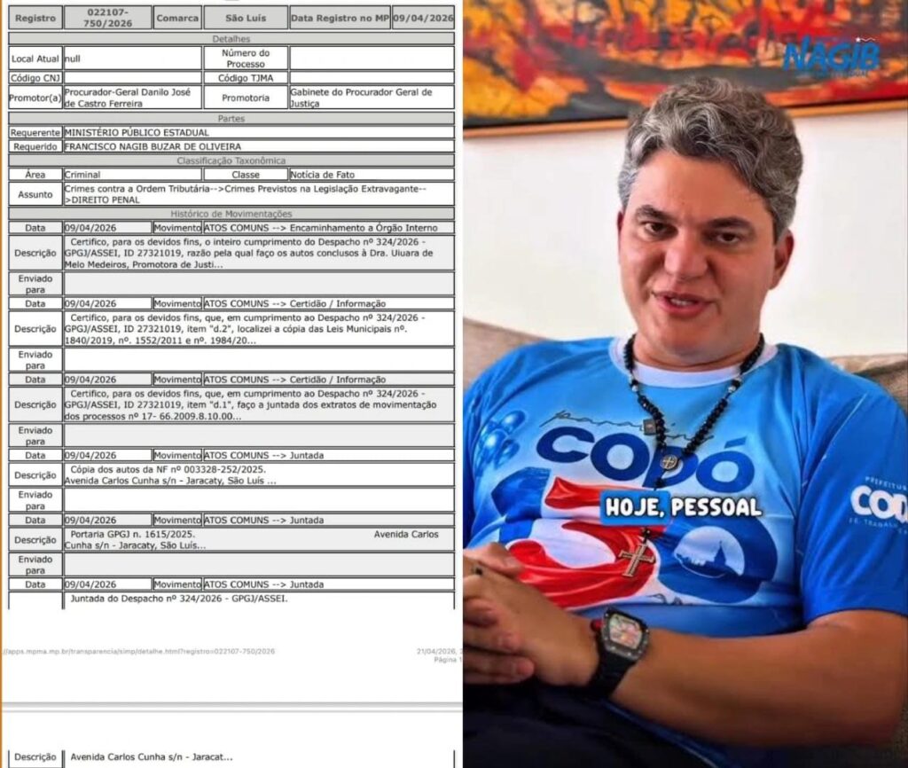 Política Ministério Público abre investigação contra Francisco Nagib após denúncias de rachadinha em contrato de R$ 5 milhões em Codó 22/04/2026