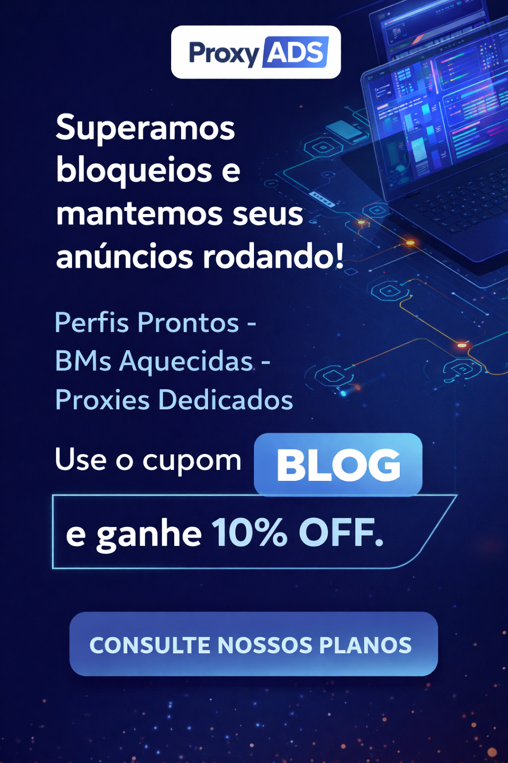 A combinação entre navegador anti-detecção e proxy dedicada é a base de qualquer operação séria de tráfego pago em escala. Sem essa infraestrutura, os bloqueios são inevitáveis e a continuidade da operação fica comprometida.