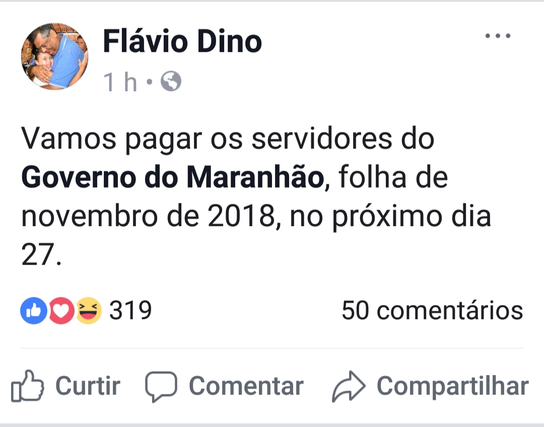 O Governo do Maranhão antecipará, mais uma vez, o pagamento dos servidores públicos estaduais, disponibilizando na próxima terça-feira (27) o salário referente ao mês de novembro. A determinação foi anunciada nesta sexta-feira (23) pelo próprio governador Flávio Dino nas redes sociais.