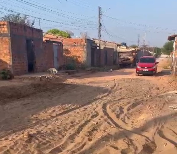 De acordo com relatos, a empresa responsável nivelou a rua, mas durante o serviço quebrou canos e deixou parte da via intrafegável. O problema tem causado transtornos principalmente para motoristas, já que veículos que tentam passar pelo local acabam atolando.