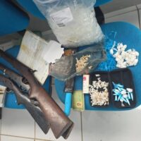 Um dos suspeitos foi preso por volta das 17h, do mesmo dia, dentro de um carro. Ele portava um revólver calibre .44 com numeração raspada carregado com seis munições, além de duas munições deflagradas, colete balístico com tombo da Polícia Militar do Piauí, dois pares de algemas, um simulacro de pistola e vários acessórios de uso policial.