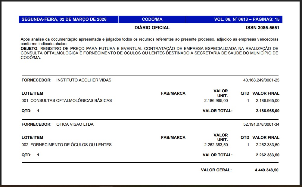 Outro ponto que tem causado indignação entre empresários é o fato de que nenhuma empresa de Codó foi contemplada nos contratos, mesmo existindo várias óticas na cidade que poderiam prestar o serviço ou participar do processo.