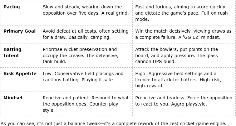 If traditional Test cricket was a slow-burn RTS, Bazball is an all-out arena shooter. The objective isn’t just to survive; it’s to dominate. It’s about scoring fast, making high-risk plays, and seizing control of the match’s tempo to force a win. Playing for a draw is like leaving a match early—it’s just not in the playbook.