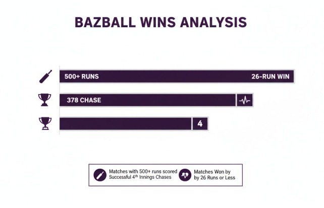 These numbers show that Bazball produces incredible outcomes, from huge first-day totals to record-breaking run chases and nail-biting victories.